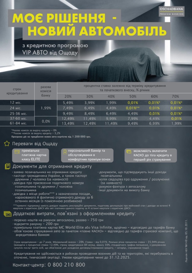 ПРОГРАМИ КРЕДИТУВАННЯ НА НОВІ АВТОМОБІЛІ ВІД ОЩАДБАНКУ