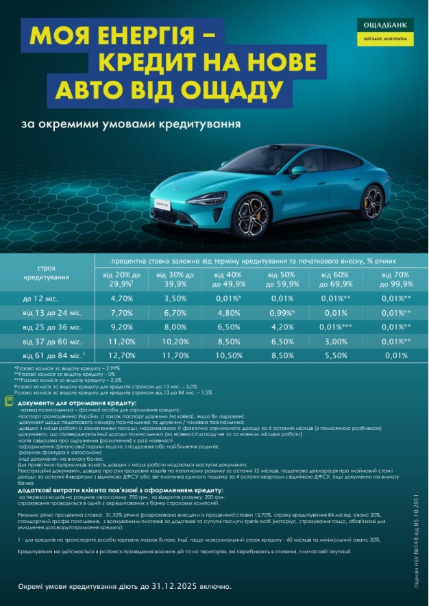 МОЯ ЕНЕРГІЯ - КРЕДИТ НА НОВЕ АВТО ВІД ОЩАДУ