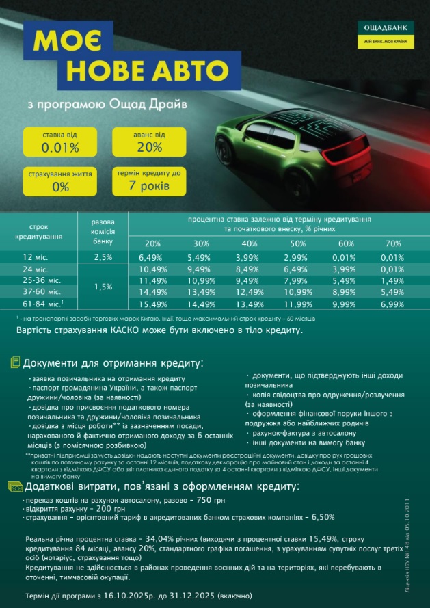Окремі умови кредитування діють до 31.12.2025 включно.